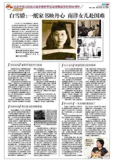 白雪娇:一纸家书映丹心 南洋女儿赴国难