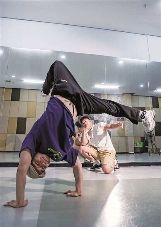 What's Breaking 1984年,一部名为《Breakin'》的电影在美国上映。影片中,酷爱舞蹈的凯丽认识了两名街舞爱好者“旋风”和“马达”,他们冲破世俗偏见,一起在街头表演舞蹈,并最终得到社会的认可。1987年,这部电影被引入中国,并被翻译为《霹雳舞》,上映后立即掀起全国性的霹雳舞热潮,许多70后大概还记得当时的霹雳舞有多火。 去年,霹雳舞进入了巴黎奥运会,19岁的刘清漪为中国队拿到了一枚铜牌。今年的大湾区全运会上,霹雳舞也是正式比赛项目,将产生两块金牌。不过,究竟怎样才算是霹雳舞,很多人也说不出个所以然,更看不懂霹雳舞比赛。 所以,霹雳究竟是个什么舞? ■采写:新快报记者 王敌 梁潇静 ■图片:新快报记者 观显锋 ●霹雳舞门槛不高 从6岁到60岁都可以跳 邓羽楷从初中开始练习霹雳舞,迄今已经17年了。“我是从2008年开始练习霹雳舞,那时看别人跳就觉得好帅,于是也开始接触这项运动,”邓羽楷把霹雳舞称为“运动”,因为霹雳舞的运动量不小,“霹雳舞还是挺讲究爆发力的,很多动作对力量的要求都很高,跳起来很帅,但也不轻松,尤其是很多倒立之类的动作,体能要求不低。” 从接触到喜欢,再从喜欢到热爱,霹雳舞是邓羽楷求学之路的重要佐助。“因为越跳越喜欢,后来就很自然地走上了职业道路。”如今,邓羽楷是广州壹舞道馆的教练,他一边钻研动作,一边教学陪练。 邓羽楷并不认为霹雳舞算是门槛很高的舞种,反而认为霹雳舞能从小跳到老。“我们承认,和其他舞种相比,霹雳舞更具有生命力,但只要喜欢跳舞,多大年纪都能跳霹雳舞,”邓羽楷说,“只要一直有训练的话,舞者的肌肉力量就会很好,那就不容易受伤,我们还见过60多岁的老将耍‘头转风车’。” 在壹舞道馆,有不少小学生在这里练习。佛山霹雳舞队教练黄颖植的儿子只有1岁3个月,他每次到舞馆,也会印随做几个脚步动作。黄颖植说:“他看到大家都在跳舞,就跟着模仿,他可能也不懂这些动作是什么意思。” 当然,在教学中,教练不会一上来就让学员做这么高难度的动作。中山霹雳舞队教练岑艺敏表示,在带初学者的时候,他们一般都是做一些比较简单、静态但比较帅的动作来让学员模仿,“第一步是要让他们先喜欢上霹雳舞,当他们对霹雳舞有兴趣了,后面他就会很主动地来练习。”在岑艺敏看来,对霹雳舞是否热爱是很重要的因素。 岑艺敏的起点也是在2008年,但真正开始专注跳霹雳舞是到了大学才开始。“跳霹雳舞会有一种很自由的感觉,当时身边有很多小伙伴一起,每天都感觉很开心,于是我们就一直坚持下去了,直到走上专业教练这条路。” 从霹雳舞爱好者到专业教练,这是从兴趣到职业的转变。这也意味着,必须要考取教练证。和许多教练一样,霹雳舞教练主要考理论和动作两门。邓羽楷透露,理论考试就是考霹雳舞比赛的评分系统和霹雳舞的历史沿革,动作考试则是要求从动作库里抽取几个元素然后编排成一个舞段,此外还要考一些运动康复学和体育法之类的内容。 做教练开心吗?“当然,因为这本身就是我们喜欢的东西,虽然也会碰上很多困难,但只要热爱就不会害怕挑战,反而在突破自己后还会很有成就感。”岑艺敏说。 ●霹雳是战斗之舞 跳舞时很注重即兴发挥 如今,已经很难考证《Breakin'》这部电影当初为何被译作《霹雳舞》。相对比较容易理解的是,电影中描述的舞种冲击力比较强,很有力量感和速度感,而且“霹雳”在发音上也比较接近原音。总而言之,“霹雳舞”这个词就随着这部电影的译名而固化了下来。 霹雳舞是美国纽约街区文化符号之一。在上世纪六七十年代,在纽约布鲁克林地区,舞者经常分成两拨比赛,被称为“战舞”。很快,各方组成舞蹈团体进行比试。因此,霹雳舞从诞生开始就有很强的竞争内涵,舞者总希望其他舞者出局。有些舞者将动作套路延伸到地面,用步伐和突然停止等动作来取悦观众,包括在地面上表演五花八门的腿部动作,双臂支持身体,这样的舞蹈动作也被称为“地板摇摆”。 正因为霹雳舞是“战斗之舞”,在中国,越来越多的武术元素被融进了舞蹈动作里。邓羽楷说:“像是‘咏春’‘长拳’的一些技法,都能运用进霹雳舞中,包括以前的一些港产片,李小龙、成龙、甄子丹在影片中的打斗动作,我们也会借鉴进入舞蹈。” 岑艺敏对此表示赞同,而且补充表示,霹雳舞中的一些翻滚动作,其实就类似于中国传统武术里的腿部招式。“其实,霹雳舞传入中国后,很快就和中国功夫相融在了一起,换个角度来说,中国功夫也深深地影响着霹雳舞文化。”岑艺敏说。 霹雳舞最突出的特点在于,非常讲究即兴发挥。在比赛中,连配乐都是随机播放,舞者根据音乐自行编舞,因此这对舞者的基本功要求很高。“霹雳舞里面有很多体操动作,比如托马斯全旋,但霹雳舞和体操并不完全一样,因为霹雳舞有很明显的原创性特征,”广州斯威迩街舞的教练叶峻杰说,“每个舞者对音乐的反应都不一样,动作表达也就会不同,所以霹雳舞要比其他打分项目更自我一些。” 正因为这种自我,霹雳舞选手往往都不用本名参加比赛。在“舞林争霸”时,大家都习惯使用花名代号。比如邓羽楷,他的舞名是“Feather”,意思是羽毛。邓羽楷说:“我的名字中本来就有个‘羽’字,同时我也希望我在跳舞时能像羽毛一样轻盈。”叶峻杰的舞名是“阿叶”,他说:“我的舞名比较简