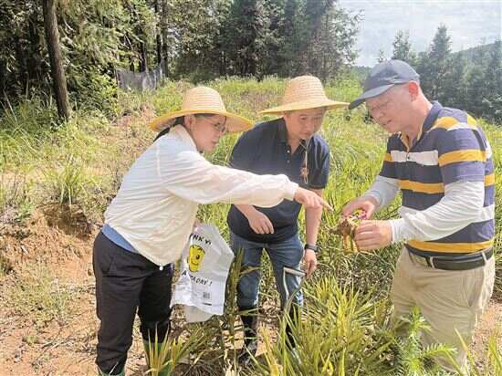 ■广东省农科院专家在小黄姜种植基地采样。 |