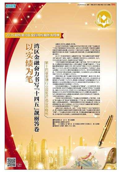 2025新快报湾区金融机构服务先锋榜 第十四届金融行业服务评选公示特刊 金融活,经济活;金融稳,经济稳。 这句话不仅深刻诠释了金融与经济共生共荣的关系,亦是广东金融业在“十四五”期间砥砺前行的生动写照。金秋九月,新快报第十四届湾区金融机构服务先锋榜如期启幕,这场历经十三载沉淀的行业盛事,不仅是对湾区金融服务的年度记录,更是广东金融业践行国家战略、交出高质量发展答卷的集中展示。 自2011年首启终端定义金融服务价值,“湾区金融机构服务先锋榜”(原“金柜台奖”)便如一颗种子,在粤港澳大湾区的沃土上生根发芽。如今,它已长成记录行业变迁、传递责任担当的“常青树”。 今年的先锋榜评选将聚焦金融“五篇大文章”实践、“百千万工程”助力成果,从消费者视角挖掘服务亮点,让湾区金融的“正能量”传遍四方。广东金融监管局数据显示,截至6月末,银行业总资产突破41万亿元,各项贷款余额近19.4万亿元,超七成为中长期贷款,为企业发展注入“长效活水”;保险业保费收入4616亿元,提供风险保障超645万亿元。资本市场同样表现活跃,广州形成多方联动的挂牌上市服务模式,239家境内外上市公司累计融资超7000亿元,总市值约3.3万亿元。 成绩的背后,是广东金融对实体经济的“精准滴灌”。截至5月末,相关贷款规模超3万亿元,制造业中长期贷款余额1.69万亿元,占比超五成;战略性新兴产业贷款1.76万亿元,新能源、生物制造产业贷款增速超20%,专精特新中小企业贷款余额近6000亿元;新发放贷款平均利率降65个BP,支持基础设施绿色升级贷款超1.2万亿元。 在科技创新的赛道上,广东金融业敢当“探路者”。AIC股权投资、科技企业并购贷款、知识产权金融生态等科技金融“三项试点”率先在广东全面落地。截至2025年6月末,已完成5支AIC股权基金设立注册;科技并购贷款授信超83亿元;知识产权质押贷款余额超466亿元,规模位居全国前列……如今,越来越多科创企业靠着这些创新服务,把技术优势转化成了发展优势,为湾区创新发展注入强劲动力。 开放是大湾区的鲜明特质,广东金融业也在跨境服务上不断突破。从推动“南沙金融30条”落地到“跨境理财通2.0”升级,每一项举措都在打破地域壁垒,让跨境金融更便利。不管是港澳居民在内地办理金融业务,还是企业跨境调配资金,都比以前更省心,这不仅让大湾区的“金融朋友圈”越来越大,也为全国跨境金融创新提供了“广东经验”。 奋楫正当时,扬帆再出发。站在 “十四五”收官与“十五五”谋划的交汇点,第十四届湾区金融机构服务先锋榜的启幕,恰是广东金融迈向新征程的 “序章”。广东金融业将持续以实绩为笔,书写着金融高质量发展的湾区答卷,在中国式现代化的画卷上,绘就更绚丽的湾区图景。(范昊怡) ■策划统筹:林 波 江 敏 骆智冕 ■版面统筹:骆智冕 杨升华 ■执 行:范昊怡 林广豪 涂 波 张晓菡 吴单单 许伯锟 王 维 古思敏 ■制图设计:郑理文 素材:VCG 豆包