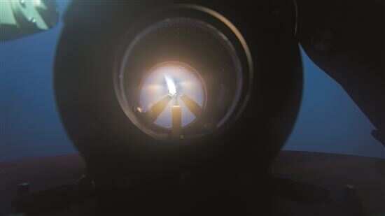 太阳能转化为电能并传到海底引燃气体 |