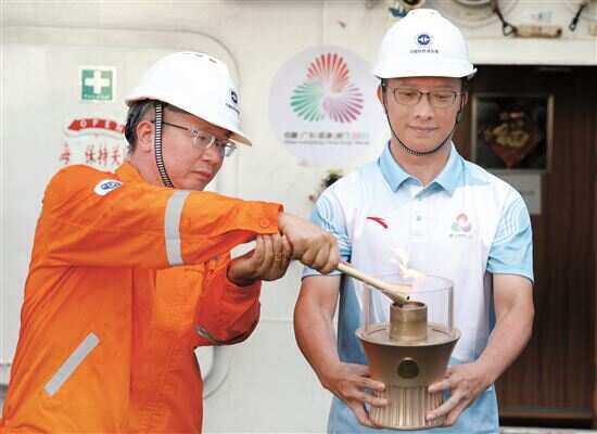 十五运会开幕式倒计时一个月 10月9日上午,广州南沙的广州海洋地质调查局科考码头人头攒动,第十五届全国运动会和全国第十二届残疾人运动会暨第九届特殊奥林匹克运动会火种采集仪式在这里举行。 在现场诸多嘉宾的见证下,来自南海1522米深处的“源火”点燃了全运圣火,这也为11月9日开幕的十五运会吹响了筹办工作最后冲刺阶段的号角。如今,粤港澳三地蓄势待发,期待在一个月后为全国观众奉献来自大湾区的华彩乐章。 ■新快报记者 高京 “源火”来自可燃冰+太阳能 一个月前在海马冷泉区采集 据记者了解,十五运会和残特奥会的“源火”,来自1522米的南海深处。 早在去年11月17日,在广州海洋地质调查局科考码头,由我国自主设计建造的首艘大洋钻探船“梦想”号正式入列,让中国成为全球第三个能自主设计建造大洋钻探船的国家。 今年9月,沿着“海上丝绸之路”的足迹,作为“梦想”号大洋钻探船配套保障船的“海洋地质二号”,带着十五运会和残特奥会“源火”采集的光荣任务,驶向祖国南海。 据悉,位于中国南海北部海域的海马冷泉区,就是此次任务的目的地。今年9月18日14时26分,广州海洋地质调查局牵头自主研发的“海马”号深海遥控潜水器(ROV)下潜至1522米的海底,抵达冷泉渗漏点。 科研人员远程精准操控机械臂持采集舱,采集渗漏点溢出的可燃冰及伴生气。沉睡的可燃冰在降压作用下被“唤醒”,分解产生的甲烷气体成为“源火”气源。16时48分,船上的光伏发电装置将太阳能转化为电能并传输到海底,在1522米的深海成功将这股来自地球“蓝色血脉”中的气体引燃。 “源火”采集成功后,科研人员通过“海马”号在海底采集点位放置“十五运会和残特奥会‘源火’采集点”永久基点定位标,纪念这次具有开创性意义的“源火”采集行动。 全运圣火被引入四盏火种灯 火炬将在港澳广深四城传递 此次火种采集活动包含“源火”采集与“圣火”点燃两大环节。 在昨天现场,采火技术团队代表手捧“源火”盒走上舞台。随后火种护卫队将“源火”盒安放至“源火”台,点燃火种盆环节开始。采火少女在“源火”台引燃手中的采火棒,国家体育总局、中国残联、广东省委省政府主要负责同志与香港、澳门特别行政区行政长官共同登台,接过采火棒。伴随着全场注视的目光,他们一起点燃十五运会和残特奥会火种盆,寓意粤港澳三地携手共进、同心筑梦。 金色火焰升腾,全场掌声雷动。 熊熊燃烧的全运圣火被引入四盏火种灯,十五运会广东赛区执委会、残特奥会广东赛区执委会、香港赛区筹委会和澳门赛区组委会代表分别受领火种。 据悉,十五运会和残特奥会火种采集完成后,将分别奔赴港澳广深四座城市,并将于11月在香港、澳门、广州、深圳举行火炬传递。 这一次,“源火”与“圣火”交相辉映,永远拼搏的体育精神、敢于探索的科学精神,与可持续发展理念正以最炽热的方式水火交融。 据介绍,这次火种采集实现了全球大型综合运动会历史上的突破,即首次利用深海遥控潜水器集成搭载“可燃冰原位采集分解及引燃装置”,在超深水海底远程精准引燃可燃冰获取“源火”,并以超高清设备记录展示采集过程。这些创新,既是我国深海科技实力的集中体现,也是“简约、安全、精彩”办赛要求的生动诠释,深刻传递了奥林匹克精神、科技协同创新、湾区融合发展的时代主题。 揭秘 突破10余项“卡脖子”技术 自主研制采火特种装置 广州海洋地质调查局方法所副所长陈宗恒在接受采访时表示,本次全运会一大特点是粤港澳三地举办,三地最显著的特点就是依山面海。去年,经过和广州赛区执委会的讨论,产生了在深海采集“源火”的想法。 “深海的压力是非常大的,深海层面一个小手指指甲上,大概就有一吨的压力。另外低温、黑暗、腐蚀的环境也给我们带来了困难。为了实现深海采集,我们联合诸多单位组成了攻关技术团队,逐步去研究攻克难题。”陈宗恒说。 广州赛区执委会大型活动部副部长麦文辉介绍说,“科研团队集智攻关,突破10余项‘卡脖子’技术,历经上万个零件加工组装,完成超百次实验室模拟与两次目标海域海上全流程试验,成功自主研制‘可燃冰海底合成分解与水下引燃设备’,即在海马冷泉区采集甲烷气体,原位合成固态可燃冰,并通过特种装置实现超深水海底点火,获取‘源火’。” 相关 《气势如虹》 十五运会会歌发布 10月9日,十五运会会歌《气势如虹》及MV正式发布。歌曲由中国音乐家协会副主席、深圳大学金钟音乐研究院院长何沐阳作词作曲,MV由歌手、演员王一博及粤港澳三地青年歌手共同演绎。 据悉,《气势如虹》的创作立足全运会首次由粤港澳三地承办这一背景,紧扣“体育精神与时代精神融合”的主题。在艺术表达上,《气势如虹》独具匠心。副歌部分连续四次、短促有力的“冲冲冲”极具冲击力,精准传递了体育竞技中不服输、向前冲的拼搏精神。 词曲作者何沐阳表示,希望这首节奏明快的歌曲,能从“大抒情”“大叙事”的传统语境中破局,将焦点从“慢抒情”转向“快运动”,让体育音乐从“赛事背景音”变为“运动催化剂”,直抵运动核心,使“享受运动”成为可听可感的体验。