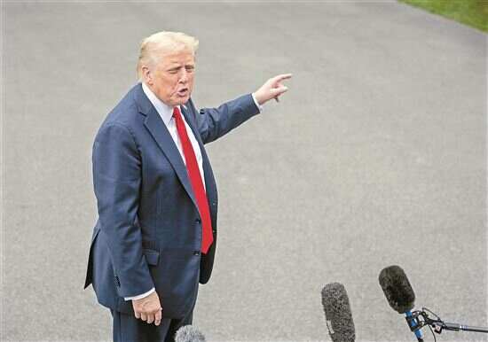 ■10月12日,在美国首都华盛顿,美国总统特朗普乘车离开白宫,启程前往中东。新华社发 |