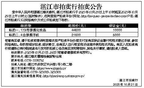 湛江市拍卖行拍卖公告