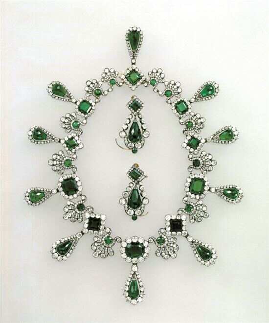 玛丽-路易丝皇后的祖母绿项链和耳环。 |