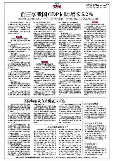 前三季我国GDP同比增长5.2%