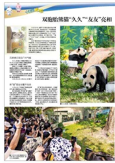 10月20日,在第十五届全国运动会开幕倒计时20天之际,“国宝迎全运”广州动物园新大熊猫馆开馆活动隆重举行。经过一段时间的观察适应期,两只大熊猫新成员“久久”“友友”在万众期待中正式亮相。四只国