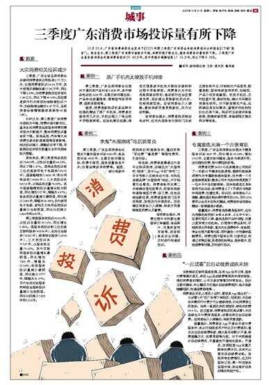 三季度广东消费市场投诉量有所下降