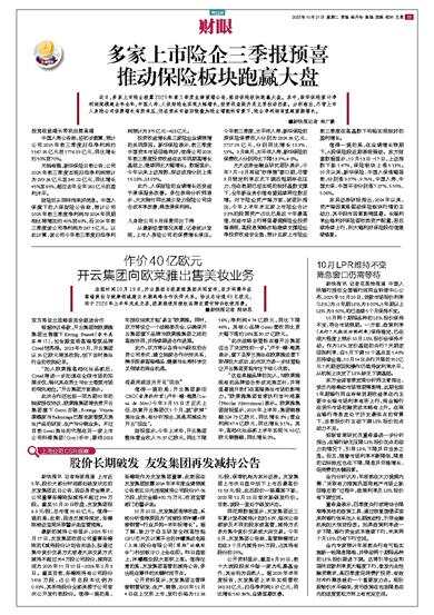 多家上市险企三季报预喜 推动保险板块跑赢大盘