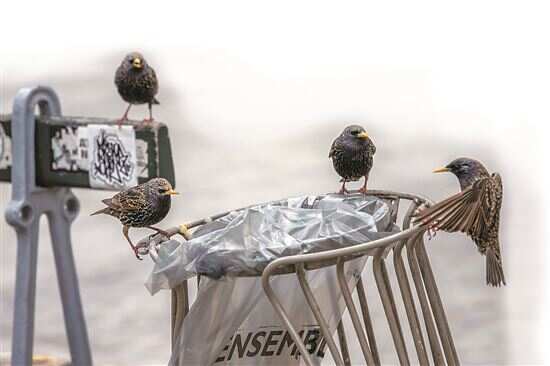 ■在法国巴黎,鸟儿在路边抢食。新华社发 |