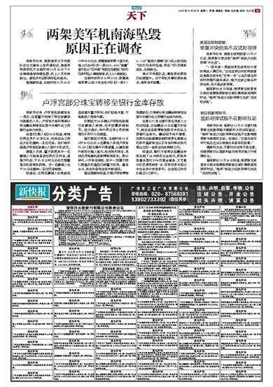 据新华社电 美国海军太平洋舰队在社交媒体上发布通报说,美海军两架军机于当地时间10月26日下午在南海海域相继坠毁,机上人员均被救出。通报并未说明具体坠机地点。 据美媒报道,当地时间10月2