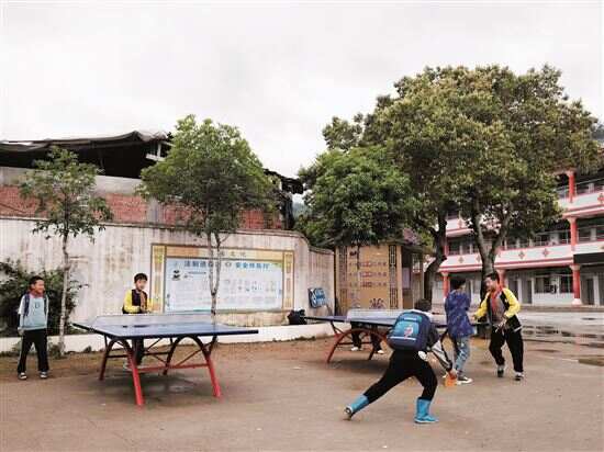 ■三排镇横坑小学的学生们在广州环投集团捐资购置的乒乓球台上打球。 |