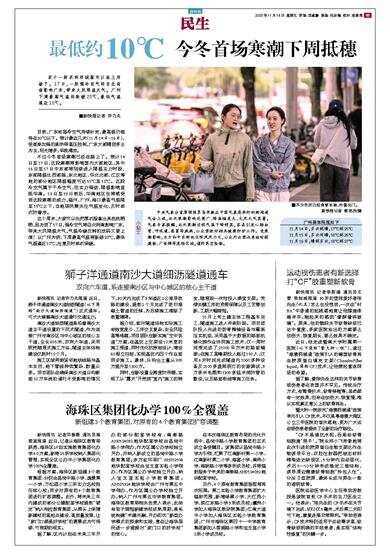 双十一新买的羽绒服可以派上用场了。17日,一股强冷空气将自北向南影响广东,带来大风降温天气。广州下周最高气温将跌破20℃,最低气温逼近10℃。 ■新快报记者 许力夫 目前,广东有弱冷