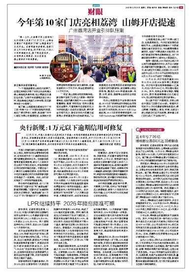 12月22日,中国人民银行正式发布《关于实施一次性信用修复政策有关安排的通知》并召开新闻发布会,详细解读政策核心内容与实施安排。该政策的核心内容是,对于2020年1月1日至2025年12月31日期间产生的单笔金额不超过1万元人民币的个人逾期信息,若个人在2026年3月31日(含)前足额偿还逾期债务,央行征信系统将不再展示这些逾期信息。 ■新快报记者 范昊怡 中国人民银行副行长邹澜在发布会上指出,按照《征信业管理条例》规定,征信系统中的个人逾期信息自还清欠款算起要保存五年。但受新冠疫情等多重因素影响,部分个人财务状况出现不可预见的变化,未能按借款合同约定按时偿还贷款。尽管这些个人事后已全额偿还债务,但信用报告中的历史逾期记录仍对其获取新贷款支持造成了一定影响。为此,央行研究制定了一次性信用修复政策。 符合条件的逾期信息,在个人信用报告的“还款状态”和“逾期金额”数据项将调整,“还款状态”由逾期标识改为正常标识,“逾期金额”由1万元以下“非0”数值改为“0”,调整将在“信息概要”和“信贷交易信息明细”模块同步体现。 具体来看,2025年11月30日(含)前足额还款的,2026年1月1日起不予展示;2025年12月1日至2026年3月31日还款的,次月月底前不予展示。如个人在2026年1月还清欠款,相关逾期信息在2026年2月底前即可展示为正常还款状态。 政策明确,2026年1月1日至6月30日期间,个人信息主体可以在每年两次向金融信用信息基础数据库免费查询本人信用报告基础上,额外免费查询本人信用报告两次。此次政策实行“免申即享”,个人无需主动申请、无需提交材料,由征信系统自动识别处理。 邹澜表示,政策不区分贷款机构、贷款类型,不设置申请程序和复杂的条件,公平公正、简便易行地为在规定日期前履行还款义务的个人提供信用重建的机会;政策对逾期时间和逾期金额做了规定,在精准支持小额逾期、诚信还款人群信用重建的同时,保留对尚未按期还款或大额逾期人群的信用约束,坚守履约守信的底线,保证征信系统的严肃性和约束力。 央行特别提醒,该政策不收费、无需第三方代理,任何以“信用修复”名义索要钱财、索取个人信息的行为均为诈骗,公众可向央行分支机构或公安机关举报。