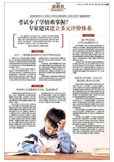 教育部要求中小学减少日常考试测试频次,有家长表示“越减越焦虑” 近日,教育部办公厅印发《关于进一步加强中小学日常考试管理的通知》(简称《通知》)。《通知》提出20条具体举措,要求减少日常考