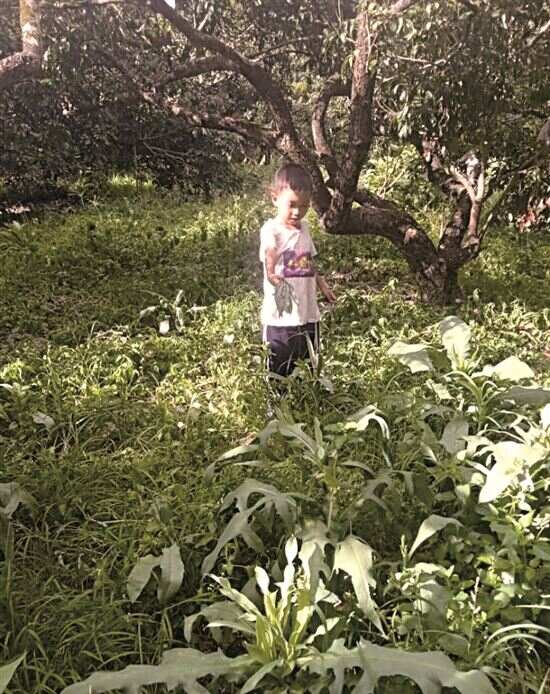■小超虽然瘦弱,却常跟随父母去果园帮忙。 |