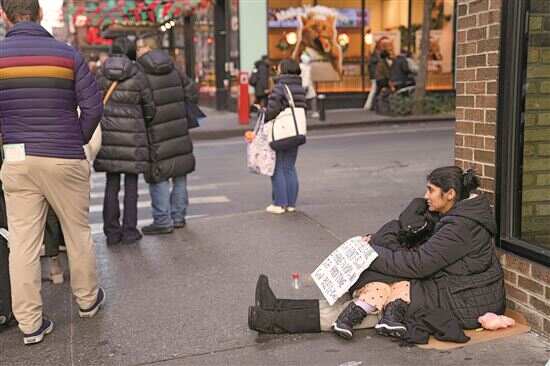■12月18日,一名女子在美国纽约曼哈顿街头寻求救助。新华社发 |