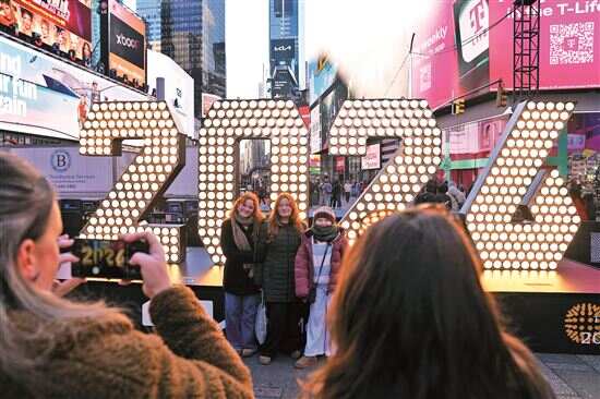 ■12月22日,在美国纽约时报广场,游客在2026年数字牌前留影。新华社发 |