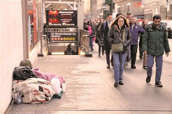 ■12月18日,一名无家可归者在美国纽约曼哈顿露宿街头。新华社发 |