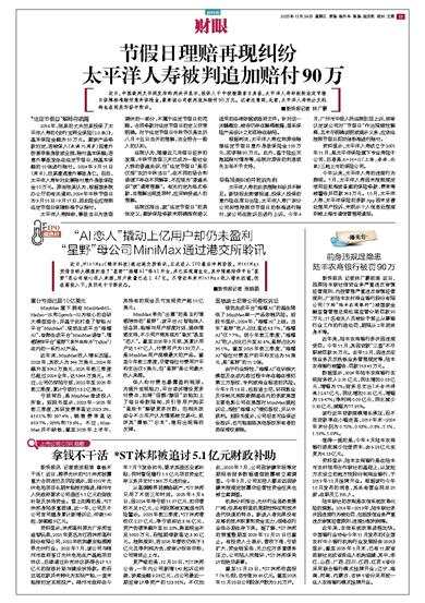 近日,中国裁判文书网发布的判决书显示,投保人于中秋假期首日身故,太平洋人寿却拒按法定节假日保障标准赔付意外保险金,最终该公司被判追加赔付90万元。记者注意到,此前,太平洋人寿的分支机构也在同类纠