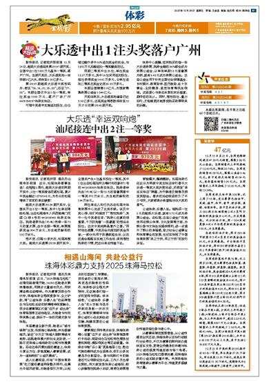 新快报讯 记者陆妍思报道 12月24日,超级大乐透迎来第25147期开奖,全国中出1注1000万元基本一等奖,落户广州。当期开奖后,大乐透奖池一举突破8亿大关,滚存至8.16亿多元。 第25147期超级大乐透中奖号码为:前区“06、16、21、25、33”;后区“07、08”。本期全国仅中出1注一等奖,单注奖金1000万元,落户广东广州4401034137体彩实体店。 可惜中奖者未实施追加投注,白白错过额外多中80%追加奖金的机会,与1800万元足额追加一等奖擦肩而过。 同期二等奖中出85注,单注奖金18.27万多元,其中16注采用追加投注,每注多得奖金14.61万多元,令单注追加二等奖总奖金达到32.89万多元。 本期全国销售2.9亿元,为国家筹集彩票公益金1.044亿元。 开奖结束后,大乐透奖池储备仍达8.16亿多元,这笔奖金将悉数滚存至12月27日的第25148期开奖。 体彩中心提醒,您所购买的每一张大乐透彩票,购彩金额的36%都会成为彩票公益金,以单张单期18元套餐票为例,就有6.48元成为彩票公益金。这些公益金用于补充全国社会保障基金、乡村振兴、教育助学、医疗救助、红十字事业、全民健身、竞技体育等民生领域。这场爱心与幸运共享的欢乐盛宴,期待您的加入。同时,理性投注,量力而行,才能够更好地享受购买彩票带来的乐趣。