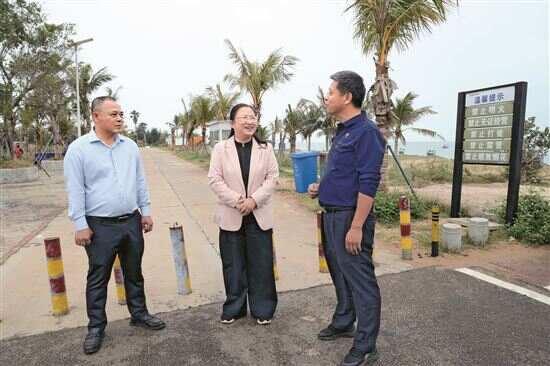■徐闻县委书记罗红霞(中)介绍,灯楼角景区创建4A级景区已列入湛江市“十五五”规划。 |