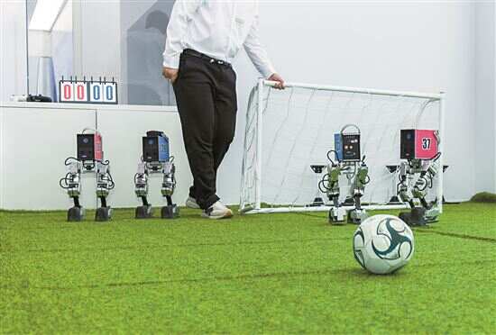 ■海心沙科技岛展示的科技体验场景,图为无人机足球竞技。 |