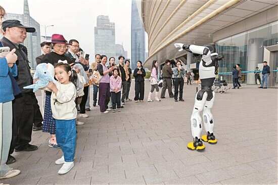 ■市民游客在海心沙观看会跳舞的机器人。 |
