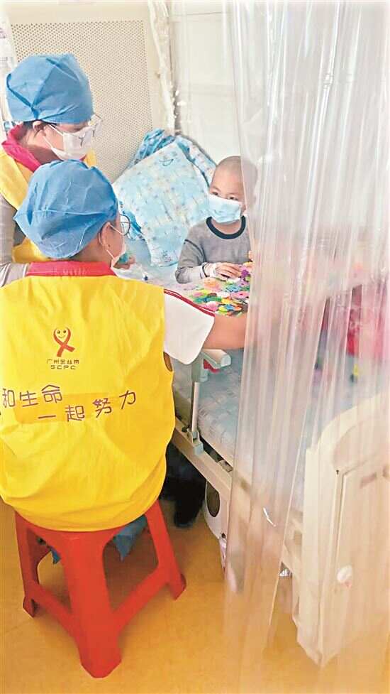 ▲广州助医社工走入病房与小楷亲切交流。 |