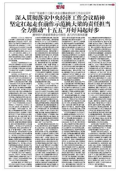 深入贯彻落实中央经济工作会议精神 坚定扛起走在前作示范挑大梁的责任担当 全力推动“十五五”开好局起好步