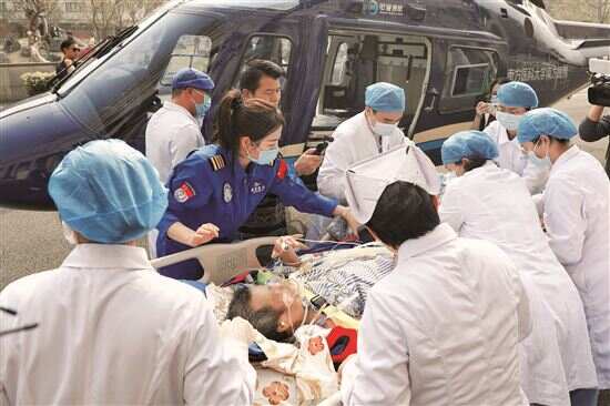 ■在多方的支持下,来自广西南宁的危重患者通过直升机空中运转成功抵穗。 |