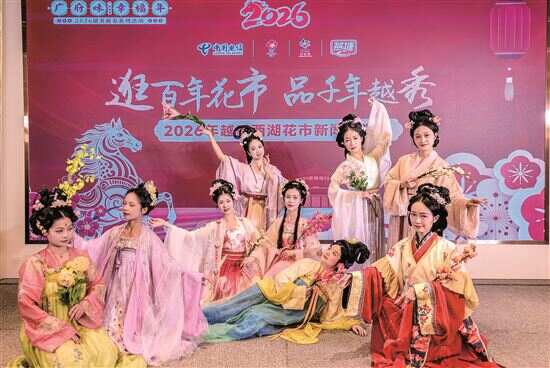 以宋代“广州第一高楼”为原型建主牌楼,11区花仙子登场…… 新快报讯 记者梁燕芬报道 以宋代“广州第一高楼”为原型建主牌楼,11个区花仙子鸣锣开市,机器人巡游、机器狗执勤……春节来越秀区“行花街”!1月23日,2026年越秀西湖花市新闻发布会在广东迎宾馆举行。这场民俗盛会将于2月13日(农历腊月二十六)至17日(正月初一凌晨)在西湖路、教育路如期举办。 本届花市深度活化非遗资源,广绣、打铜、榄雕等八项广府非遗技艺将融入花市场景,纪录电影《行花街》首映礼与第三十六届羊城春节体育花会同步启幕。此外,“逛百年花市,品千年越秀”主题图片展即将举行。 景观设计上,花市主牌楼以宋代“广州第一高楼”、享有“南州冠冕”之称的共乐楼为原型,其楹联从全国3000对投稿中精选而出,由书法名家挥毫题写。而“万马奔腾”主题生肖造型、红木宫灯主题中心花坛、唐三彩陶马风格铜壶滴漏花景等景观,将马年元素与广府文脉巧妙融合。此外,教育路口“神驹献瑞”小景更以“中华第一青铜马”为原型传递新春祝福。西湖花市指挥部相关负责人透露,主牌楼等核心景观将展至元宵节后,花王评选获奖花卉也将迁移至北京路南段供市民在春节期间持续观赏。 同时,科技与安全成为花市保障关键词。西湖花市主办方运用5G、人工智能等技术实时监测人流,通过执勤升降台、伸缩铁马等设施优化疏导,设置共享单车“电子围栏”并严控易燃易爆品。花市期间 ,广州市工人文化宫爱心驿站将为工作人员提供免费充电、轻饮食服务。 值得一提的是,今年广州市市场监管局联合越秀区花市指挥部,共同举办广州传统迎春花市开市仪式暨越秀区启市仪式,11个区花仙子将共同见证鸣锣开市,机器人巡游、机器狗负责安保、元宇宙花市、珠江主题游船等多维场景,将实现线上线下全域引流。