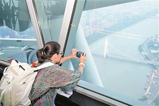 ■2025年4月,一名参加广交会的客商登上广州塔拍照留念。2025年,广东省进出口总额等指标继续稳居全国首位。 新快报记者 郭思杰/摄 (新快报资料图片) |
