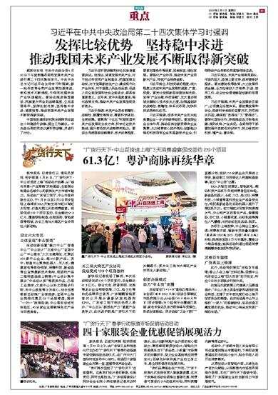 “广货行天下·中山百货进上海”3天消费盛宴促成签约109个项目 新快报讯 记者李红云 通讯员罗纯 钟轩报道 1月31日,“广货行天下·中山百货进上海”活动在沪启幕,以“城市形象+产业展销”