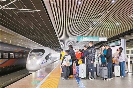 2月2日,乘客在广州南站站台候车。当天,2026年春运正式拉开大幕,预计离穗、抵穗人员流动量将达2亿人次,同比增长3.8%。