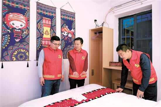 ■驻三排镇工作队在瑶家大院查看民宿运营情况。 |