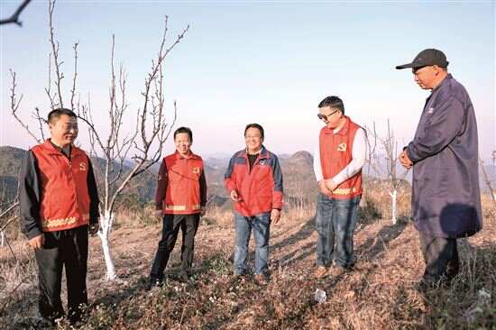 ■驻三排镇工作队与瑶山梨基地负责人共同研究今年发展计划。 |
