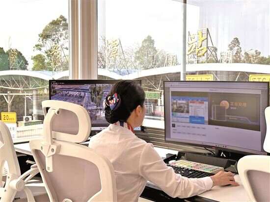 ▲工作人员在云舱内监测站场车流情况。 |
