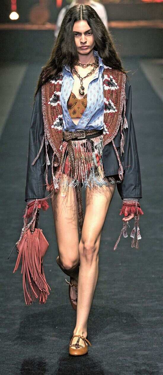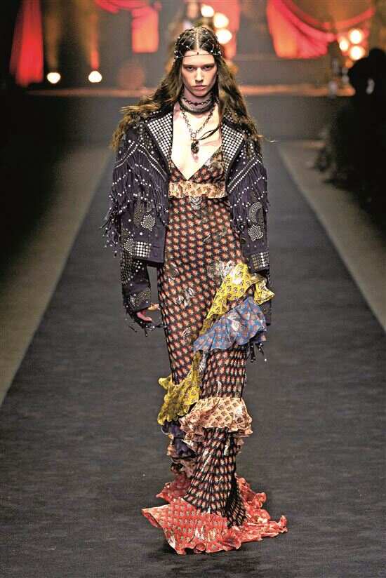 2026春夏,游牧美学继续渗透时尚圈。 浪漫波嬉风格冲破传统桎梏,将波西米亚的自由不羁、嬉皮士的灵性觉醒与浪漫主义的柔美精致熔于一炉,摒弃传统嬉皮的粗糙感与波西米亚的过度随性,重构出精致不刻意、自由不失序的穿搭哲学。 浪漫波嬉的核心内涵是自由、灵性与柔美的三重共生,萃取了波西米亚的自由灵魂,以流动廓形与层叠穿搭呼应游牧天性,延续嬉皮士的灵性追求,用自然材质与手工细节传递对本真的向往,同时融入浪漫主义柔美细节,以蕾丝、褶皱、柔和色彩中和叛逆感,从而形成粗粝与精致并存、野性与温柔共生的独特气质。快节奏都市生活中,人们既向往嬉皮士式的精神自由,又不愿舍弃精致美学;既迷恋波西米亚的异域风情,又追求穿搭的实穿性,这一风格令自由与浪漫的结合唾手可及,带蕾丝饰边的皮革胸衣搭流动的佩斯利印花长裙或随意搭在肩头的钩针披肩,都足以在穿搭中完成自由与柔美的游牧之旅。 Focus A 佩斯利花纹 流动的异域诗篇 佩斯利花纹(Paisley)是内部填有精美繁复细节的泪滴状或松果状弯曲纹样,象征生命与重生,与浪漫波嬉的灵性追求不谋而合,因而成为该风格中的核心元素之一。2026春夏,设计师将佩斯利花纹通过印染、刺绣、编织、渐变等多元手法呈现,复古元素焕新。 Focus B 摇滚民族风 柔中带刚的碰撞 浪漫波嬉中的摇滚民族造型并非直白的朋克叛逆,而是将传统民族元素通过斑驳做旧、文字层叠与暗黑色彩等设计手法巧妙融入摇滚乐的反叛基因,打破民族风情的固有印象,塑造不羁的波西米亚风格。它汲取世界各地民族服饰的精华如印度刺绣、摩洛哥几何图案、墨西哥色彩碰撞等,再融入摇滚风格的利落剪裁与材质对比,形成柔中带刚的独特张力。 Focus C 野性动物纹 自然灵性的温柔 经典动物纹在浪漫波嬉中褪去了张扬的攻击性,成为自然灵性的温柔载体,低饱和度加柔化处理为核心,通过淡雅色彩、虚化轮廓与创意重组呈现朦胧野性美。强调弱化野性而强化柔美如选淡化色彩、缩小纹路比例、柔化边缘、材质拼接的动物纹单品,搭蕾丝领口与荷叶边下摆或用动物纹鞋履点缀碎花长裙,让野性元素成为温柔造型的点睛之笔。 Focus D 繁花与蔓藤 手工感诗意延伸 灵感来自古典花园与中世纪艺术的繁花与蔓藤,代表浪漫波嬉对自然与手工的双重致敬。精雕细琢的植物纹样象征自然生命力,展现浪漫内核,借手工编织、刺绣、钩针等工艺赋予服装温度与质感,塑造精致而充满生命力的视觉语言。材质上优先选择亚麻、棉麻、真丝等自然面料,搭手工编织包、钩针帽等配饰,凸显自然手工的风格内核。 ■新快报记者 梁彧/文(资料图片)