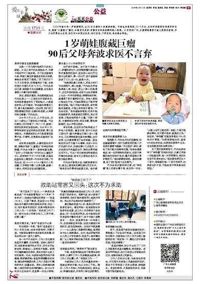 1岁萌娃腹藏巨瘤 90后父母奔波求医不言弃