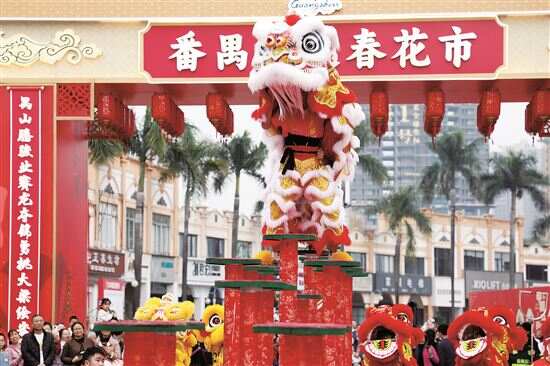 新快报讯 记者谢源源 通讯员番宣报道 2月12日,2026年番禺迎春花市在南村镇万博中心商业街盛大开幕。鳌鱼舞、舞龙舞狮、机器人跳舞,还有“大湾鸡”也来逛花市。 据悉,今年花市以“赛龙夺锦,跃马扬鞭”为主题,设有标准档位252个,涵盖年桔花卉、工艺品、公益宣传、年货食品、茶饮咖啡、非遗潮玩等八大板块。花市首次系统化融合非遗展示与现代科技体验,不仅邀请广绣、鳌鱼、漆器、龙舟等传承人现场展示技艺,同时设置无人机障碍赛体验区,让市民亲身感受低空经济的魅力。