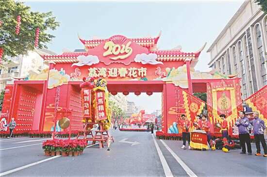 荔湾传统迎春花市开锣,持续至大年初一 新快报讯 记者谢源源 通讯员荔宣报道 行花街、叹美食,品味地道广府年味。2月14日,2026年荔湾区传统迎春花市启动仪式在荔湾路与中山七路交界处主牌楼下举行。新快报记者了解到,荔湾花市于2月14日(腊月廿七)至17日(正月初一)2时在荔湾路举行。本届花市品类齐全,既有传统应节花卉,亦有岭南文创、各地美食等特色体验。荔湾区诚邀广大市民与八方游客来荔湾、行花街、叹美食,在西关烟火气中共度新春佳节。 新快报记者了解到,荔湾花市的主牌楼作为迎接八方来客的“岭南迎宾门”,融合岭南传统花窗与马年新春元素,主入口采用创意设计,寓意开门纳福、万事如意。 漫步荔湾路,花香扑面而来。蝴蝶兰展翅欲飞,银柳红苞如珠,桃花枝头点点嫣红。盆花区内,年桔金黄累累、杜鹃姹紫嫣红、冬青红果满枝。街坊们俯身细选心仪年花,档主们麻利打包,喜气洋洋迎新春。 今年荔湾花市的文创、工艺品摊位展销多款富含广府文化元素、便于携带的特色新年手信,包括红木小摆件、创意利是封、广绣饰品,以及第十五届全运会吉祥物“大湾鸡”的周边产品等。市民游客可将“广州年味”带回家。 据介绍,荔湾区作为岭南文化中心核心区,始终将传承弘扬“行花街”这一国家级非遗作为重要文化使命。本届花市以“花市+”推动文商旅深度融合,正是荔湾落实老城市新活力、老传统新特色的生动实践。