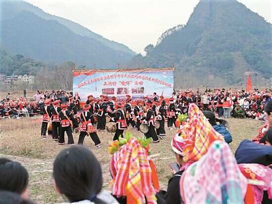 新快报讯 记者朱清海 通讯员李梓盛报道 锣鼓喧天,号角齐鸣,身着盛装的瑶族同胞涌向田间地头……农历正月初一上午,清远市连南瑶族自治县大麦山镇上洞村一年一度的县级非物质文化遗产“唆样”活动在此盛大举行,村民以古老而隆重的方式,祈愿新岁风调雨顺、族人平安。 “唆样”为瑶语音译,意为“出行”与“出彩”,是上洞村排瑶文化中极具分量的传统民俗。2023年9月,该活动被列入第九批县级非物质文化遗产名录。每逢春节,无论身在何方,村民们都会身着鲜艳的瑶族服饰返乡集结,通过庄重的祭祀祈福、气势磅礴的锣鼓巡游以及激烈的赛铜锣环节,祈愿新岁风调雨顺、族人平安。这一习俗不仅承载着对祖先的敬仰,更成为了连接外出游子与故土乡愁的重要纽带。 “‘唆样’已经有300多年历史,是展示瑶族文化、维系村寨情感的纽带。”据上洞村村委书记房四贵介绍,如今,不少村民在珠三角等地区工作、生活,但每年春节,大家都会不辞辛劳赶回家乡,参加“唆样”活动,让这项活动年年传承,越办越旺。 为切实保护与传承少数民族优秀传统文化,助力非遗焕发新生,驻大麦山镇帮镇扶村工作队(下称“工作队”)及组团单位广州市退役军人事务局积极作为,为活动提供了坚实保障。广州市退役军人事务局捐赠了三套纯手工制作的“唆样”道具,包括大铜锣与牛皮鼓。这些道具均由非遗传承人采用传统工艺打造,甚至连牛皮鼓的铆钉都坚持使用传统竹钉,力求还原最原汁原味的非遗风貌。 工作队负责人表示,正计划进一步联动县歌舞团,深挖“唆样”文化内涵。并建议在保留民族元素的基础上,融入经典瑶族唱腔与现代舞编排,通过艺术创新为传统文化注入鲜活生命力,让“一年一会”的珍贵非遗,能够以更加灵动多元的姿态“活”在日常舞台上,绽放出更加绚丽的光彩。