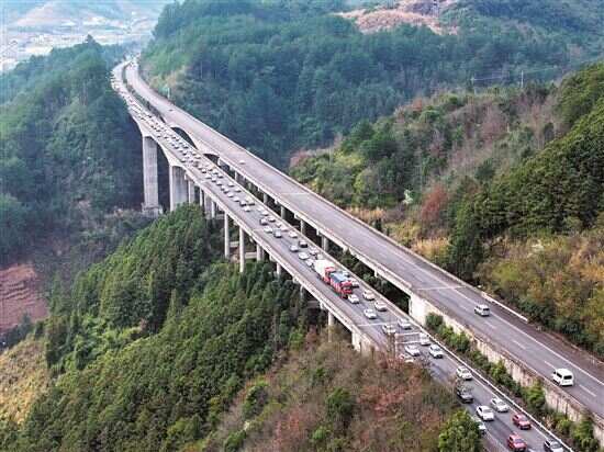 ■这是2月23日在厦蓉高速公路贵州省黎平县境内拍摄的返程车流(无人机照片)。 新华社发 |