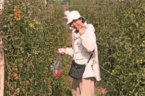 ■在小番茄基地,游客正在体验采摘乐趣。 |