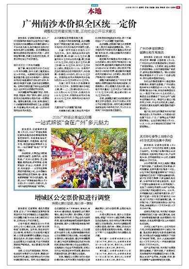 调整拟定两套实施方案,正向社会公开征求意见 新快报讯 记者程羽报道 近日,广州市发展和改革委员会发布《关于南沙区自来水价格调整有关问题的通知(公开征求意见稿)》,拟对南沙区自来水价格体系进