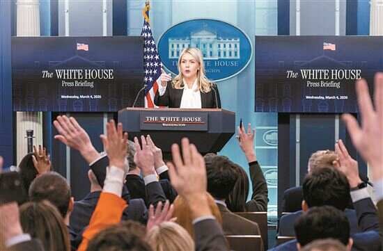 ■3月4日,在美国首都华盛顿,白宫新闻秘书莱维特出席记者会。新华社发