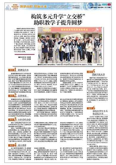 随着职业教育改革向纵深推进,广东高职(高专)学生的成长路径正变得更加开阔,更具活力。目前,从普通专升本、自学考试,到中外合作办学、成人高考、国家开放大学等多种渠道,已构建起一座四通八达的升学“立