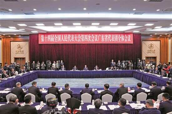 ■3月6日下午,十四届全国人大四次会议广东省代表团举行开放团组活动。广东代表团与媒体形成默契,记者在代表发言区实现“零距离”采访拍摄。羊城晚报记者蔡嘉鸿、梁喻、曾育文、宋金峪/摄 |