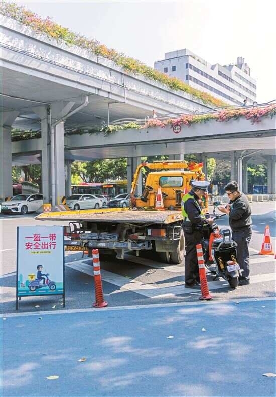 ■3月13日,广州交警在广州越秀区小北路地铁站周边开展电动自行车整治行动。